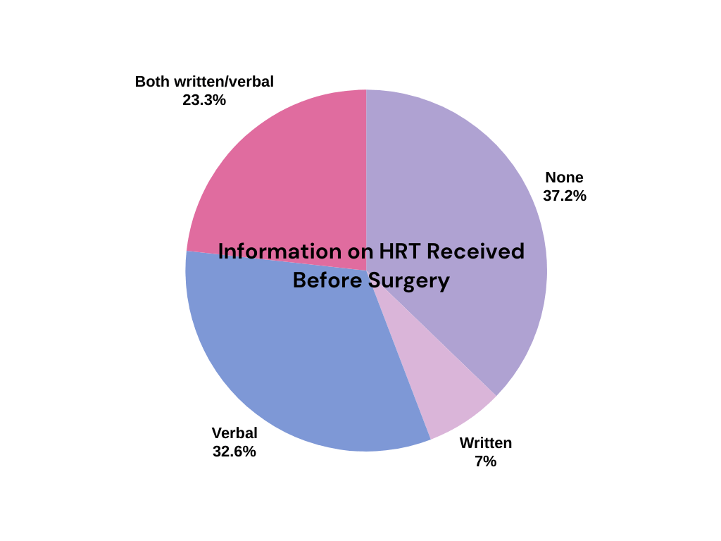 Echoing these results, Dr. Linda Dear’s nationwide survey conducted in 2022 included 4,288 individuals, of whom 3% (123 respondents) identified as being in surgical menopause. The survey revealed that 18% of these respondents found it difficult to be prescribed HRT, further underscoring the need for proactive self-advocacy. Additionally, only 3% of respondents felt well prepared prior to their surgery and 51% reported that there were no discussions about HRT before their surgery.