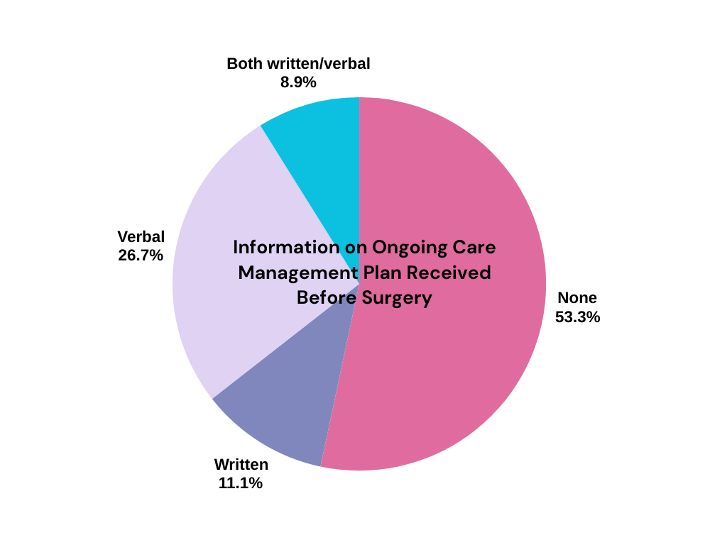 A further 53% of respondents received no information on ongoing care management, emphasising the need for women to actively seek out and demand the information and support they require.