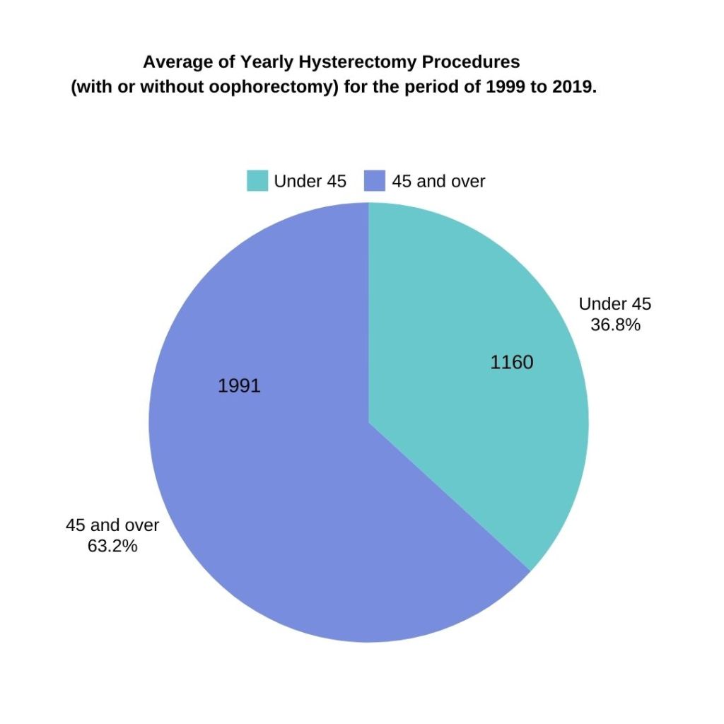 In the public sector, over a 20-year period, an average of 3,151 New Zealand women underwent hysterectomies each year (with or without ovary removal), with 37% (about 1,160 women) under the age of 45.